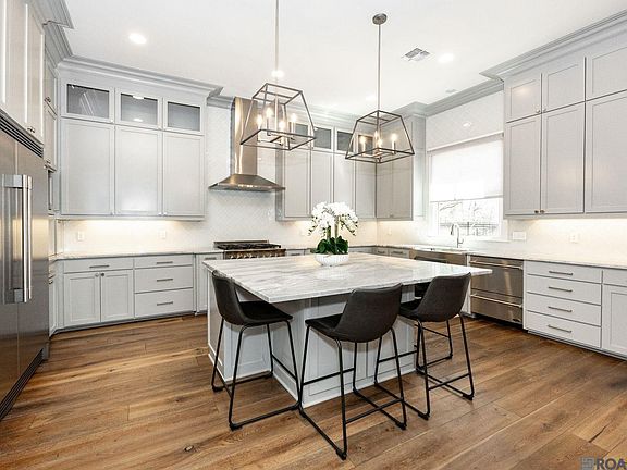 Stately yet warmly elegant, this custom home in University Club Plantation is located on the golf course overlooking the 17th fairway. The interior features wide open spaces with lots of interior brick and wood. A wall of floor-to-ceiling windows bathes living areas in natural light, adding drama to the deeply coffered living room ceiling. The use of brick columns supporting heavy antique beams along the ceiling is a repeating theme, with the kitchen, foyer, formal dining room and butler’s pantry all framed by this beautiful brick-and-wood combo. The spacious kitchen features stainless steel appliances and painted cabinetry rising to the ceiling. The primary suite is elegant with wood floors and a rolling barn door into the bath, where a dramatic floor-to-ceiling brick wall separates a deep soaker tub from the glass walk-in shower. What a cool feature! Upstairs is a bedroom, a full bath, a bonus room and a media room with surround sound. Also, there’s an app for that in this smart home. The Rachio app controls the landscape sprinklers, the Ecobee app governs the A/C and heat, and a Ring camera guards the front door. The home has a fabulous patio with an outdoor kitchen and fireplace, a three-car garage and a whole-home generator to keep the power on. There is also a full house security system to protect your home. The University Club is located just minutes from the LSU campus and convenient to downtown as well as many medical facilities. Home to both the LSU men’s and women’s golf teams, this prestigious golf Community offers golf, swim, tennis, and pickleball as well as dining options in the clubhouse bar and grill. The active community also offers a fitness center, covered playground, on-site security, stocked lakes and lots of common green space- Truly something for everyone to enjoy!