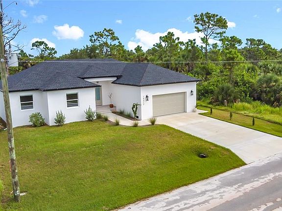 Experience luxury redefined in this breathtaking Florida waterfront paradise. Dreaming of luxury, space, privacy and waterfront living you have it all right here! This must see new Scandinavian-inspired residence located at 14312 Rothschild Avenue in Port Charlotte, Florida. Designed with modern architectural precision, this 3-bedroom, 2-bath home spans 2,122 sq. ft. of exceptional craftsmanship. Built on a stem wall foundation with over 12 feet of total elevation, the property showcases 10+ foot ceilings, PGT impact windows, and a 12’x8’ sliding glass door that floods the interior with natural light and serene canal views. The open-concept design features white oak luxury vinyl plank flooring, slim shaker cabinetry with soft-close drawers, quartz countertops, tile backsplash, and open kitchen shelving complemented by a custom hood vent and LG stainless-steel appliances. Each bedroom offers a walk-in closet with custom shelving, while the bathrooms boast large-format curb less tile showers with built-in niches and a freestanding soaking tub in the primary suite. Additional features include tray ceilings in the living room and primary bedroom, an electric tankless water heater, 8-foot interior and exterior doors, LG washer and dryer, and an oversized garage that is wider and deeper than standard. Exterior highlights include sand-finish stucco with full gutters, a wide paver driveway and walkway, and a concrete kayak launch for direct canal access to brackish water. Nestled in a secluded yet convenient location near downtown North Port and Port Charlotte, this home offers a harmonious blend of contemporary elegance and tranquil coastal living. NO mandatory HOA or CDD fees. This exceptional residence will be available December 1, 2025. Immerse yourself in the sophistication of true Florida luxury living. Call to schedule your private showing today!