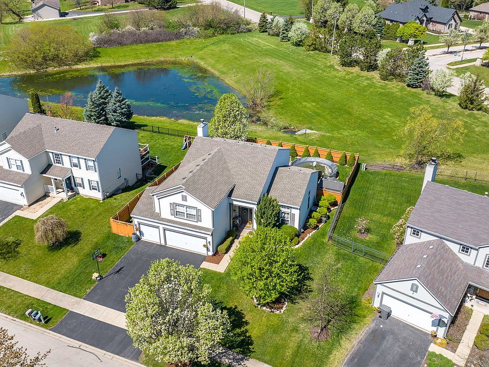 Welcome to your dream home in the coveted Victoria Crossing neighborhood! Immerse yourself in the beauty of Victoria Crossing's landscapes, parks, catch-and-release ponds, walking paths, and much more. This stunning residence boasts vaulted ceilings, plantation shutters, and fresh paint throughout the 1st and 2nd floors in 2024. The spacious master bedroom offers a peaceful retreat, while the second bedroom is as large as the master bedroom, providing flexibility and comfort. The family room boasts a gas fireplace, perfect for cozy nights and enjoying family time. Entertaining is a joy with a full finished basement showcasing movie theater seating, surround sound, a wet bar, and an electric fireplace. The master bathroom, renovated in 2020, includes a heated whirlpool tub and large walk in shower. The 2nd-floor hall bathroom was also renovated in 2021, along with the 1st-floor half bathroom. Step outside to a backyard oasis backing to green space and beautiful pond. Additional features include a new roof in 2020, an above-ground round heated 54" pool with a water slide and new pool liner in 2021, large Don't miss this chance to own a home that combines comfort and functionality with modern flair. Schedule your showing today!