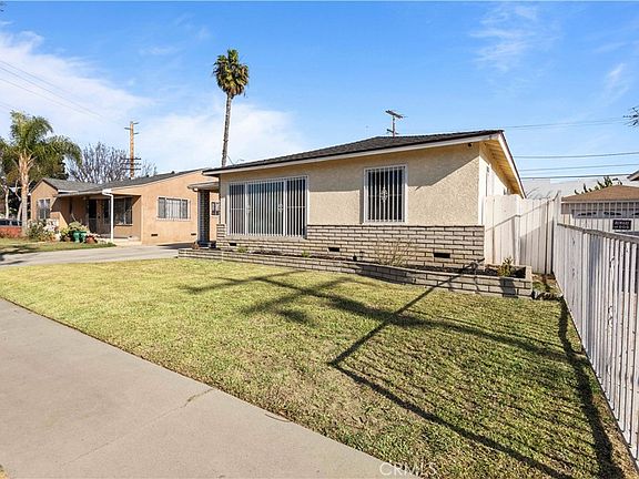 Welcome to this charming single-story home in Bellflower. This beautifully upgraded 3 bedroom, one and 3/4 bathroom home offers a comfortable and stylish living experience. As you enter the home, you'll love the spacious living and dining room featuring laminate flooring, recessed lighting and neutral paint tones. Head into the kitchen that boasts upgraded cabinets, sleek granite countertops, intricate tile backsplash, stainless steel appliances and tile flooring. Beyond the kitchen is the indoor laundry space with access to the backyard. The primary bedroom is located at the back of the home making it a private retreat complete with attached bathroom and access to the backyard as well. Two additional generously sized bedrooms (with ceiling fans) share a renovated hallway bathroom. Both the primary and hallway bathrooms feature upgraded vanities, tile flooring, light fixtures and neutral tile in the shower and bathtub enclosure. There is a large attached storage area behind the garage perfect for a gym, office or all your boxes. The home has a detached 2-car garage and privacy fence leading to backyard featuring a patio cover, large grass area and new water heater. This home is close to shopping, dining, schools and has convenient access to freeways. No HOA and low taxes too!!! Don't let this one pass you by!!!