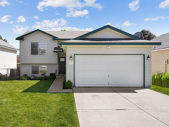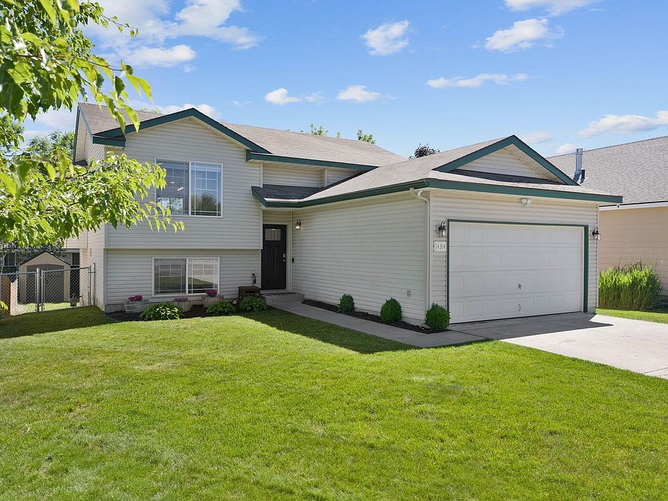 Looking for a move-in-ready starter home in Spokane Valley? This updated traditional 4-bedroom, 3-bathroom home is perfect for you! Enjoy vaulted ceilings, a spacious dining area, and a large kitchen with an island and lots of natural light. The primary bedroom comes with an ensuite bathroom for your convenience. The finished daylight basement features a large family room, laundry, two oversized bedrooms, and a full bathroom. Step out to a large concrete patio and a storage shed, perfect for your outdoor needs. Located in a quiet neighborhood close to shopping, dining, grocery stores, and freeway access, this home offers central A/C, a gas furnace, and low-maintenance vinyl siding with a landscaped yard and sprinkler system. Fenced backyard and 2-car garage. Plus, it's in the Central Valley School District. Don’t miss out on this Spokane Valley home!