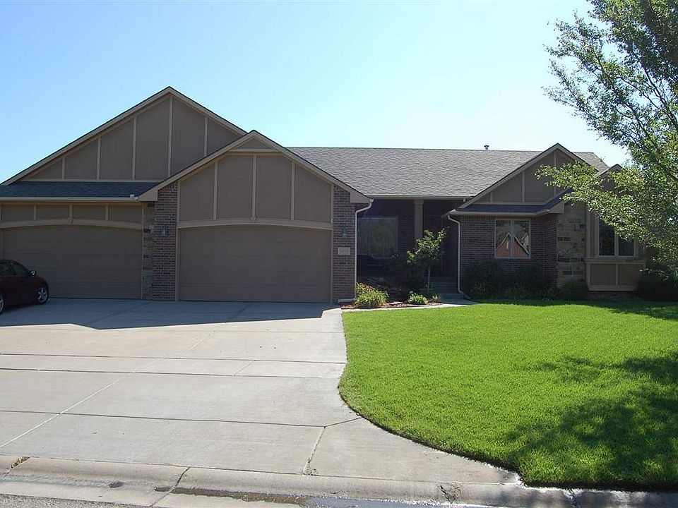 Beautiful Ranch home built by Lies-Buegner. This home has a very open floor plan and has very spacious rooms. There are 5 bedrooms most of them have walk-in closets. Wood floors in many area's up and down with Crown molding and lots of windows for natural lighting. The kitchen is very large with Maple cabinets and Granite countertops, a walk-in pantry and an island. Nice kitchen eating space, a hearth area where a fireplace could be added and a formal living space. There is a office, mud room, drop zone and a full bath are off the kitchen that formally was a mother-in law suite so this are could be used for a 6th bedroom. The basement is a full walk out at grade with 9' ceiling. The basement is very open also with a Rec. area and game area's, a Family room with fireplace that they use for a theater room, it could also be used as a bedroom. There are 2 more bedrooms a full bath, storage and a concrete safe room. The back yard is very large with a shed, there is a full length and patio on the back of the house. Plenty of room for a pool. With a 4 car insulated 23' deep garage, a well and sprinkler system. Many other great features and updates not listed. Wonderful neighborhood and Goddard schools, don't wait to see this home with over 4,200 total sq. ft.