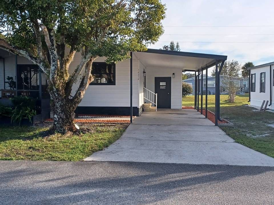 Beautiful remodeled, like new manufactured 2 bedroom, 2 bath home with about 1,056 sq ft living space, located in The Fairways Country Club a 55 plus gated community. Come settle down in this open concept modern home with a modern kitchen, spacious living room, and a cozy dining room. New floors, new Kitchen cabinets, new appliances and a center counter top for quick snacks or dining. Walk into your large Master bedroom with new bathroom that includes modern vanity, separate stand-up shower and lots of closet space. The Guest bedroom has direct access to a newly renovated bathroom with tub. From your large living room, walk in to your enclosed porch that lets in the warm Florida sunlight and offers great space for relaxation or entertaining. New outside vinyl sidings, with a roof overlay. This property has a covered driveway carport and attached enclosed shed for additional storage. The community is about 35mins from Disney, and 40mins from Cape Canaveral. The home is also less than an hour from major beaches. Come to The Fairways Country Club and enjoy the family oriented atmosphere of the community as well as participate in all the numerous entertainment functions, activities and amenities. All listing information is deemed reliable but not guaranteed and should be independently verified through personal inspection by appropriate professionals. Integrity Mobile Home Sales cannot guarantee or warrant the accuracy of this information, measurements, or condition of any property. Measurements are approximate. Lot rent is subject to change.
