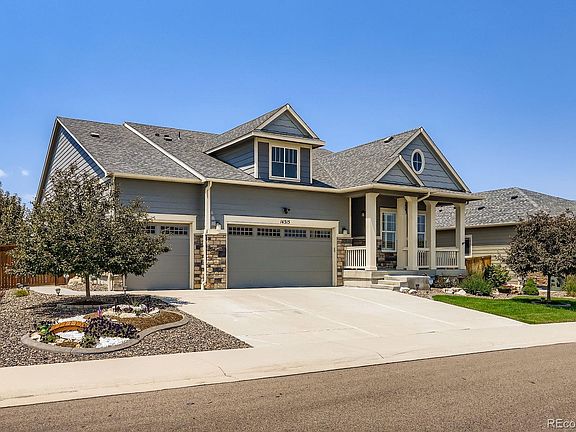 MOUNTAIN VIEWS, MOUNTAIN VIEWS, MOUNTAIN VIEWS!! Set against panoramic mountain vistas; this ranch floor plan by Meritage is crafted to delight & inspire. The sweeping mountain views can be admired from nearly every thoughtfully designed room where gatherings flow into the fresh air with direct access to a verdant backyard retreat. A covered patio invites sunrise coffee and sunset toasts with a mountain backdrop. A spacious additional patio incorporates 2 electric awnings that provide all day shade & night time LED lighting for the perfect get-together. The lush lawn offers space to relax, entertain, or play . Landscaped for privacy with no homes behind. The semi-custom shed w/electricity provides space for a workshop or extra storage. The chef’s kitchen celebrates culinary artistry adorned by rich espresso cabinetry, premium stainless-steel appliances, a generous island, custom coffee bar & a sizable pantry. The great room’s wall of windows frames the landscape like a living masterpiece. A well placed main-level office with built-in desk & cabinetry offers a private work-from-home haven. The beautifully appointed primary suite is a true sanctuary of sophistication with sweeping mountain views, a spa-inspired five-piece bath featuring a deep soaking tub, oversized walk-in shower, dual vanities & a spacious linen closet. The expansive walk-in closet is designed for effortless organization & transitions directly into the laundry room. The secondary bedrooms each provide versatile living spaces encompassing their own private bath ideal for multigenerational living or visiting guests. A nicely finished basement invites fun & relaxation for billiards, family movie night or a cozy lounge & pre-plumbed for a kitchenette/bar for the ultimate entertainer’s dream. A fully insulated, drywalled, painted & heated garage w/14’ ceilings, water spigot & a plethora of shelving rounds off this pristine residence with countless upgrades plus an abundance of TLC!!