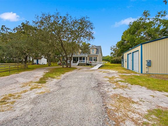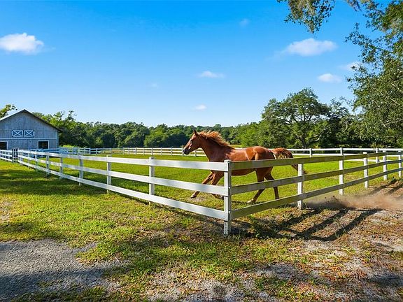 Welcome to your dream farmhouse retreat — a slice of country paradise on 5 sprawling acres! This beautifully maintained property offers the perfect blend of rustic charm and modern convenience. Enjoy peaceful mornings overlooking your own portion of a tranquil lake, or spend your days tending to the horses in the two corrals and stables just steps from home. The stables include a tack room, 4 stalls total, 3 of the stables have their own runs for the horses. The property is fully fenced and gated, and pulling in makes you feel like you are on a farm or out in the country. The large covered front porch is perfect for morning coffee and easy weekends. Walking inside you'll notice the open concept, high ceilings and beautiful kitchen. The fixtures throughout have been upgraded and both upstairs and downstairs are split floorplans. The primary bedroom has a large walk-in closet with built ins in the closet and an ensuite bathroom with a soaker tub. The main floor does have it's own AC unit as well. The property is fully equipped for a true country lifestyle — featuring a chicken coop, a charming she shed (or man cave) with a full bathroom, and a 30x40 ft garage with two bay doors, its own electrical panel, and upgraded epoxy concrete floors — ideal for hobbies, storage, or even running a small business from home. Inside, the upstairs area offers two spacious bedrooms, a full bathroom, and a large flex space that could easily serve as its own living room, all comfortably managed by a 3-zone AC system. The home’s upgrades continue throughout: a new well pump with water filtration system, upgraded pool pump and chlorinator, and beautifully refreshed stonework. The front porch stairs have been redone with durable Polywood materials — no more worrying about wood rot, just years of easy upkeep and timeless curb appeal. This property has 2 additional storage sheds, a chicken coop, and plentyof space to park a boat or RV. Whether you’re relaxing under the gazebo, working in the shop, or enjoying a dip in the sparkling pool, this property offers endless possibilities for country living with every modern comfort already in place.