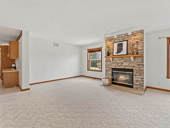 OPEN HOUSE FRIDAY MARCH 31st 4pm-7pm A picture perfect setting! Nestled on the shore of Cedar Lake, on a beautiful .65-acre lot, this 3 bedroom, 2.5 bath ranch style home on a full basement has been so well maintained by the owner who had it built. With over 2168 sq ft above grade plus a full, partially finished basement, there is tons of space to entertain! A large kitchen offers lots of cupboard & counter space, a center island, and a desk area. Appliances are included. A beautiful stone fireplace is the focal point of the living room (fireplace is wood burning but has never been used) and is flanked by 2 large windows that overlook the lake. An additional family room area has a cathedral ceiling and sliding doors that lead to the 2-tiered patios. The large primary bedroom offers a large en-suite with double bowl vanity, a stand-up shower, and a garden tub. In addition, there are 2 large bedrooms with great views of mature pine trees, a full bath with walk-in shower, a half bath and a large laundry room which is tucked away from sight. Washer & Dryer included. The basement is partially finished and is just waiting for your ideas for use. Lots of storage space in the unfinished part of the basement. Many updates include furnace & C/A 2019, Water heater 2020, Roof 2011, low step walk-in shower 2019, disposal 2019, washer 2019. A 18x26 outbuilding has a hoist in place which remains, a propane heater, and a ton of storage above. The sellers have stocked the lake in the past and there are some nice sized large mouth bass, crappies, and bluegills. Lots of mature trees, and extensive perennial landscaping. Average monthly utilities: Electric REMC: $150 - 2 meters (one for the house/one for the barn), NIPSCO Gas:$100 in winter, City Sewer - $120 (water is a private well), Trash Republic $75 quarterly. Small John boat can stay.