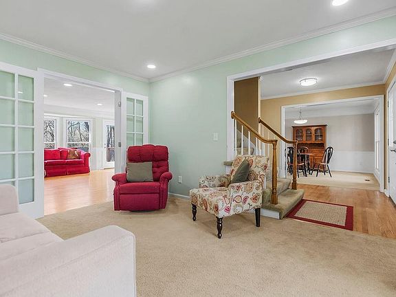 Back on the market after graduation celebration and huge price reduction! This stunning 2 story home offers 4 bedrooms, 4 1/2 bathrooms in a park like setting on a cul-de-sac lot! Wonderful Lakeview Estates subdivision with pool, pickle ball court, basketball court, tennis court, and lake. Main floor has office, formal dining, great room, plus hearth room off the kitchen. Primary bedroom has sitting room/nursery with large updated bathroom with heated floors, double sinks, tub, skylight and shower. Walk in closet has washer/dryer hook ups along with attic access to store seasonal items. Bedrooms 2 and 3 share a bathroom. Bedroom 4 has it's very own private bath. Walk out finished basement has large rec room for entertaining plus full bath. Also a large workshop with garage door access to back yard for your bigger projects. Backyard has deck overlooking park like yard with fire pit area. Don't miss the additional storage under deck steps.
