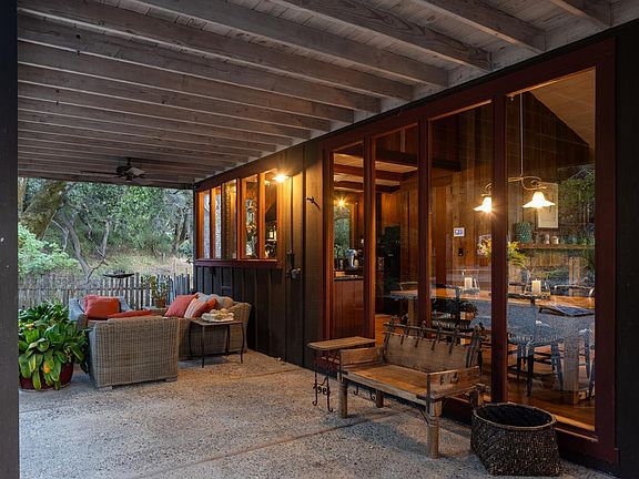 This beautiful home is nestled on 4.79 oak-studded acres in sunny Carmel Valley, bordering Garland Ranch Regional Park. Enjoy privacy, stunning views, and access to hiking/riding trails. Surrounded by natural beauty and terraced gardens, the property offers a tranquil setting, yet Carmel Valley Village is only 2 miles away with dining, wine tasting, shops, and more.The unique home blends rustic-modern architecture with Early California style. The Main House features two bedrooms, two baths, and a cozy ambiance reminiscent of Big Sur. The Studio, Bonus Room, and office space echo that charm. The Main House's upper level boasts an open floor plan with high ceilings, oak floors, a gourmet kitchen, and a spacious living area with a fireplace. The lower level features two bedrooms, each with en-suite dressing rooms. The Studio offers a comfortable retreat with a bedroom, bath, hot tub and deck with scenic views.  A Bonus Room below the deck and a charming office room near the Stable/Workshop Area provide additional living spaces. The Workshop/Stable area includes storage and space for horses. Come experience this perfect family get away.