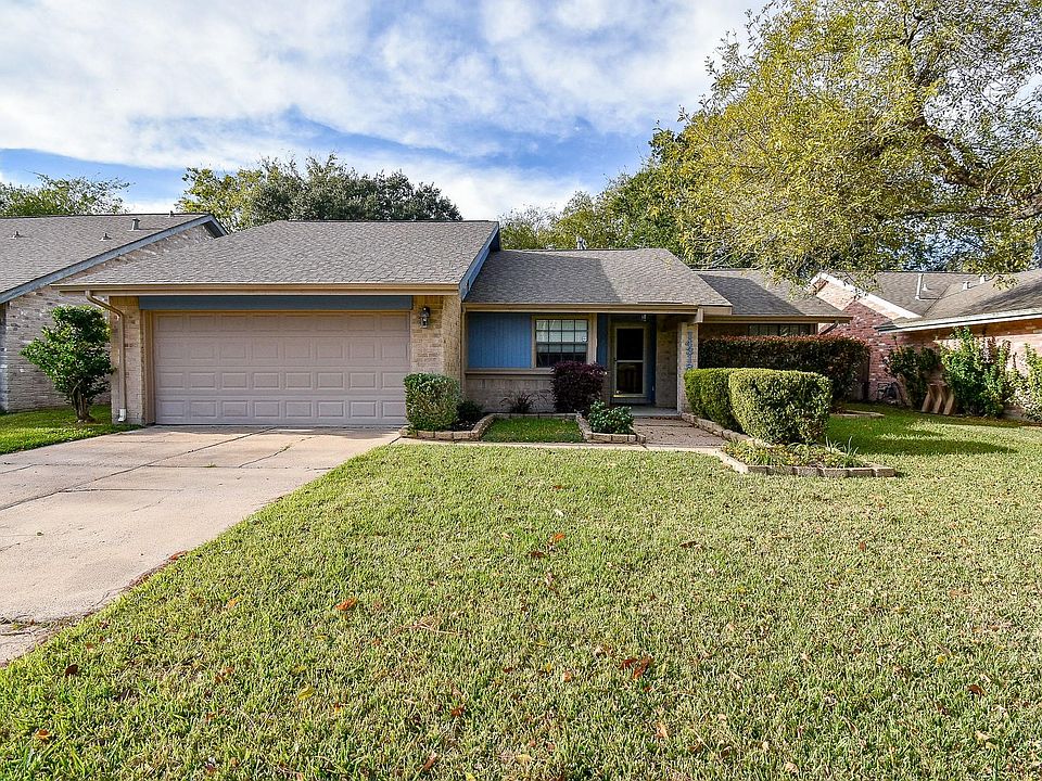 Great one story located in FBISD * Proud owners have updated second bath, replaced carpets in primary and secondary bedroom, freshen up interior and kitchen cabinets with new paint * Inviting backyard includes an extended covered patio for entertaining plus more great storage with a walk-in shed * Bright family room with high ceilings has a cozy gas log fireplace and is open to breakfast and kitchen * Primary bedroom has high ceiling and nice view of large backyard *