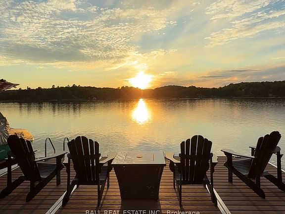 LUXURY LAKEHOUSE: One of the most prestigious point lots on Paudash Lake, this stunning 2022 custom built bungalow is tucked in the trees at the end of a year round municipal road. Featuring million dollar western lakeviews for breathtaking sunsets every night, with 329ft of waterfront and over half an acre of privacy. This year-round home is a modern waterfront masterpiece, finished to perfection with a wall of soaring sliding glass doors that flood the open concept living space with lakeviews. Sleek quartz kitchen with top of the line appliances, incredible walk-in pantry, lakeview dining and living room with striking fireplace. Dream primary suite featuring incredible lakeviews with walkout to deck, exceptional walk-in closet and luxurious 5pc ensuite. Thoughtful layout with 2+2 bedrooms with 4 full bathrooms and 2255sqft on the main floor with a full walkout basement featuring lakeside rec room, propane fireplace and walkout to covered patio. Ample space to host on the upgraded oversized dock, level lakeside yard and the spectacular wrap-around waterfront deck with glass railings overlooking serene treed privacy. A rare opportunity to own this contemporary work of art, where architectural elegance meets the natural beauty of Paudash Lake