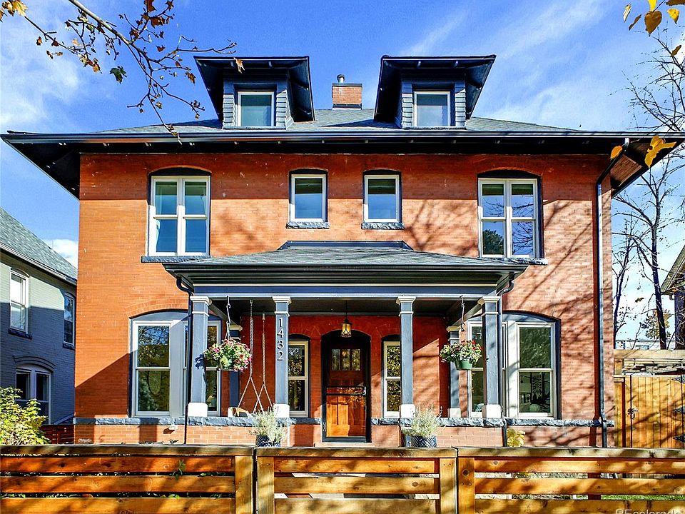 STUNNING 4 BEDROOM, 3 BATH CONGRESS PARK DENVER SQUARE HOME BUILT IN 1901! Brimming with historic charm and incredible curb appeal! Perfect porch to meet all the wonderful neighbors out walking their dogs and kids! The beautiful foyer sets the stage for the craftsmanship and warmth found throughout, starting with a sun-filled living room featuring gorgeous hardwood floors, a decorative fireplace and sliding glass doors leading to a private south facing side yard—perfect for enjoying Colorado’s sunshine! The spacious dining room, filled with natural light, flows seamlessly into the lovely kitchen showcasing cherry cabinets with glass front accents, stainless steel appliances and slab granite countertops! A generous main floor powder room, expansive mudroom with ample storage and laundry room (washer and dryer included) all add convenience to everyday living! Upstairs, the primary suite boasts original hardwood floors and a newly remodeled ensuite bath featuring double sinks, walk-in shower and a custom walk-in closet! Two additional bedrooms share a completely renovated full bathroom! Also, a bonus space that can be used as an office, craft room or yoga retreat. Head up to the top level and you'll find the 4th bedroom or flex space! An unfinished basement provides abundant storage space and future potential! Incredible backyard oasis provides plenty of green grass to run around in and a new pergola and gas grill connection on the side for outdoor entertaining! All new landscaping with a garden box, an impressive new fence and Rachio Smart Sprinkler System! Oversized one car garage with a wide alley for parking convenience! New roof, gutters & exterior paint (2025)! Central air conditioning! Located in one of Denver’s most beloved neighborhoods, you can walk to Congress Park, City Park & Cheesman Park! Close to the Denver Botanic Gardens, Sprouts, Trader Joe’s, Cerebral Brewing, shops and restaurants along 12th Avenue and 9+CO! Teller Elementary, East High School!