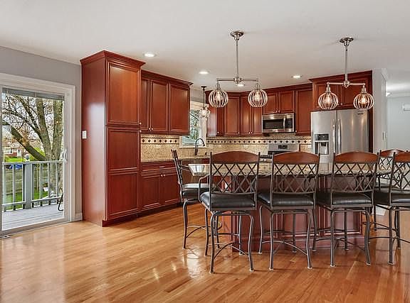 Multiple offers received. Seller requesting "Highest & Best Offers". Owners transformed this traditional bi-level into an amazing, open concept residence with 2 luxurious levels of living space. Enter to amazing fresh kitchen/great room with 8 foot island, custom granite tops, stainless steel appliances, "Amish" cherry cabinets, ceramic backsplash and gorgeous hardwood floors. 2 completely gutted full baths shine through decorator ceramic tile, cherry vanities, custom shower enclosures and granite vanity tops. LL mirrors the upper level with 2nd kitchen, family room, full bath, 2 more bedrooms...all complimented by the latest wood laminate flooring. Huge 2-tiered deck overlooks the partial fenced back yard. Double wide driveway (new in 2015) leads to detached 2+ car garage. Most new electric & plumbing, new vinyl thermalpane windows. insulation, newer Lennox furnace & c/a, new white double panel doors, white trim, cove molding, brushed nickle hardware, solid oak staircase, new white faux wood window coverings & marble tile floor in foyer. Convenient storage under stairwell. Everywhere you look is new, fresh, creative living space. Quality materials and workmanship throughout. Seller to provide existing survey dated August 2013 to buyer. Just move in! Please remove shoes when showing and use the south side door; not the front door....thank you.