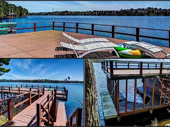 CRANBERRY LAKE EXECUTIVE & BOATHOUSE- RECENTLY REDUCED!! WOW is the best way to describe this fantastic home on the shores of Cranberry Lake of the famous Eagle River Chain! It offers a private WET boat house w/viewing deck and 100 ft. of gorgeous sandy frontage. Everything today's buyer wants is covered here: stunning great room w/a fieldstone wood burning fireplace; island wet bar, luxurious main level master suite w/private bath & fireplace; a true "cook's kitchen" w/ Viking appliances & large dining area; & a lakeside sunroom. Upstairs is an open loft area w/2 private BR suites & downstairs is a fully finished walkout lower level, kitchenette area, another fireplace, & 2 additional BRs. There is also a snuggly 1 BR & 1 BA guest cottage & a huge 3 car detached garage. This is a one of a kind custom built home designed for entertaining where no expense spared from dual furnaces, to an in-ground sprinkler system/home security system. A MUST SEE!