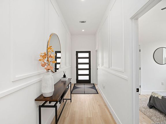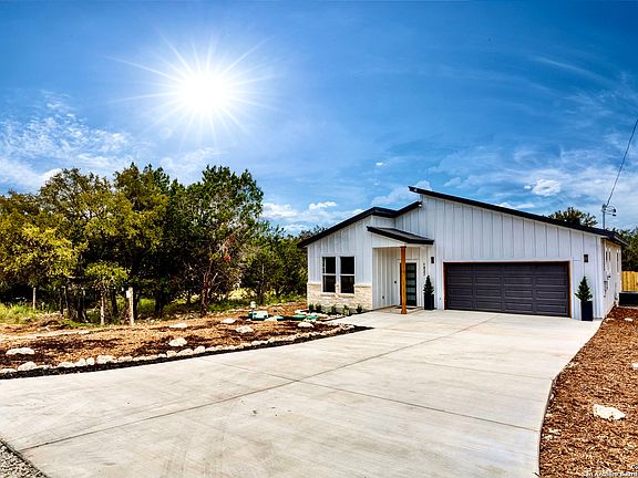 Stunning New residence in Spring Branch. This impressive home offers 10 foot ceilings, 3 bedrooms, 2 bathrooms! An energy efficient home with spray foam insulation comes with 1-2-10 builders warranty! Upon entering the home, you will be welcomed by an inviting foyer that leads to the living room and opens to the dining room and a stunning kitchen with modern features and a large island with a built-in microwave. The bright and open floor plan creates an easy flow between the living, dining, and kitchen areas, making it perfect for entertaining. Spacious bedrooms, each of which offers ample space and natural light, and 2 bathrooms. The spacious primary suite boasts his and hers vanities, soaking tub, glass enclosed shower, large walk in closet. Backyard offers stunning landscaping, covered patio and privacy. Smart home with all the lights working with Alexa and Google can be programmed, based on preferences, low voltage wiring throughout the home for TV, Internet and phone, WiFi garage door opener, rough-in for EV charging and smart video doorbell. Quality craftsmanship is evident throughout this new built home. Home features shaker kitchen cabinets, quartz countertops, stainless steel appliances, upgraded tiles and bathroom vanities, laminate flooring, Can lighting, Decorative wood panels and moldings throughout the home. Spectacular Home In A Great Community that offers: fishing, tennis, pickle ball, swimming pool and lake access to boat ramp 11 at Canyon Lake.