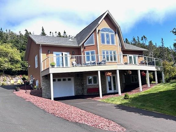 Welcome to 1432 Main Road, Dunville! This stunning property offers breathtaking ocean views, manicured gardens, and a paved driveway, all set in a location that will truly leave you in awe. From the 50-foot front deck, enjoy panoramic scenery that changes with the seasons. Exterior Features: • Ample parking for family and guests • Both an attached garage and a detached double-bay garage • Detached garage is 32’ x 36’, two-storey, wired, insulated, heated with a WETT-certified wood stove and mini split, and roughed in for water and sewer • Municipal water and sewer plus an artesian well • Beautifully landscaped grounds. Upgrades & Comfort: • New hot water boiler • 3 new mini-splits for efficient heating and cooling • In-floor heating under tiled areas such as the kitchen, upstairs ensuite, and downstairs bathroom. • Sound system throughout the home with outdoor speakers Interior Highlights: Step inside to an abundance of natural light filling the spacious living room. A two-way fireplace connects the living and dining/kitchen area, creating a cozy yet elegant atmosphere—perfect for entertaining or enjoying quiet evenings at home. From the primary bedroom or dining room, walk directly onto your deck to savor your morning coffee while taking in million-dollar views. Every detail of this home has been designed for comfort, convenience, and style. Call today for your private viewing!