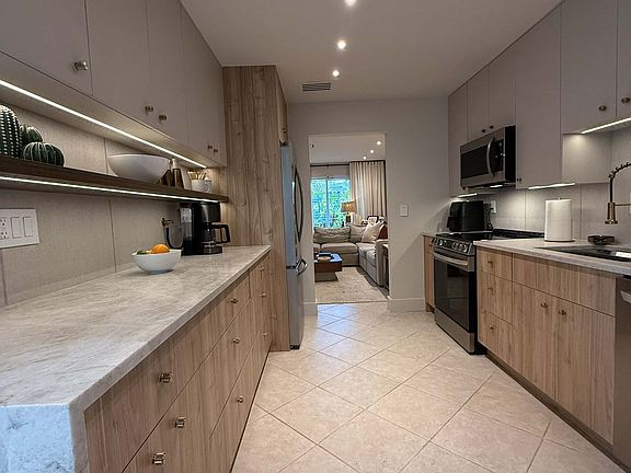 Exquisite high-end finishes define this recently remodeled duplex home in the heart of Wilton Manors. Photos for reference, renting unfurnished. Amenities include: Kitchen - Brand new Tash Majal leather finish countertops with waterfall edge. - Brand new wood and cashmere colored wood cabinets. - New 29 cu. Ft. stainless steel refrigerator with bottom freezer, smudge-proof finish, and internal water dispenser. - New stainless-steel dishwasher with stainless interior, steam clean, heated dry, and QuadWash-pro cycles. - New smart range with built-in air-fryer, five burners, and shockingly beautiful blue oven. - Bottle jet washer. - Undermount lighting. - End-to-end built-in brown walnut shelf. - Smart outlets compatible with Alexa or Google. - Brand new ceiling lighting. Dining/Florida Room - Floor to ceiling glass doors overlooking the courtyard. - Wood slat accent wall with invisible door to the laundry room. - Smart outlet compatible with Alexa or Google. - Brand new ceiling lighting. Laundry Room - Top-of-the-line 5.3 cu. Ft. high-capacity Sapphire Blue GE Profile smart front load washer and dryer with UltraFresh vent system, and WiFi connectivity. - Washer features SmartDispense technology. The reservoir holds up to 32 loads of automatically-dispensed detergent for the perfect amount based on load weight and fabric type. - Dryer features WasherLink, which wirelessly links to the washer so you only choose a setting once. - Invisible access door from the Dining/Florida Room. Living Room - Built-in niche for 65" TV. - Feature niche with lit shelves. - Smart outlets compatible with Alexa or Google. - Brand new ceiling lighting. Guest Bedroom - Wood slat accent wall. - Smart outlet compatible with Alexa or Google. - Brand new ceiling lighting. Guest Bathroom - Beautifully remodeled. - Smart toilet with auto-up/down lid and seat, warm seat, cleaning jets, etc. - LED mirror with three lighting settings and warm glass feature. - Smart outlets compatible with Alexa or Google. - Brand new ceiling lighting. Linen Closet - Large hallway closet pre-wired to host all electronics (internet router, TV box, etc.). - Motion sensor lighting. Primary Bedroom - Color-drenched in stunning Studio Green from Farrow & Ball. - Spacious room to accommodate a king bed and large nightstands. - Modern light wood chandelier. - Smart outlets compatible with Alexa or Google. - Brand new ceiling lighting. Primary Walk-In Closet - Carrie Bradshaw would be jealous! - Stunning walk-in closet with undermount lighting on every shelve. - Shoe tower to accommodate 28 or more pairs of shoes. - 10 deep storage drawers. - Full-body LED mirror with three lighting temperatures. - Smart outlets compatible with Alexa or Google. - Brand new ceiling lighting. Primary Bathroom - Stunning gut renovation with floor-to-ceiling tile from Porcelanosa. - Step-through walk-in shower with end-to-end lit shelf. - Kohler shower valve controls across for never-again jumping to avoid the first splash of cold water. - Built-in handheld shower. - Smart toilet with auto-up/down lid and seat, warm seat, cleaning jets, etc. - LED mirror with three lighting settings and warm glass feature. - Undermount sink lighting. - Lit built-in wall niche by the sink for toothbrush and soap. - Smart outlets compatible with Alexa or Google. - Brand new ceiling lighting. Courtyard - Private courtyard with outdoor shower. - Two brand new storage bins. Parking - Private parking for two cars. One spot on the driveway, one spot on the swell. EV Charging - Charging outlet available upon request (bring your own charger) Annual lease. Tenant is responsible for utilities (electric, internet, and water).
