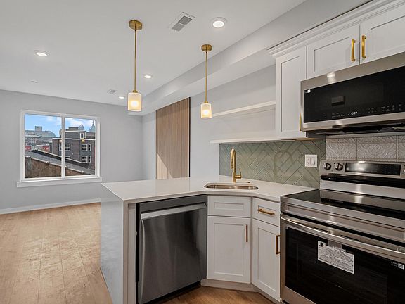 The kitchens are a culinary dream, featuring sleek stone countertops and stylish shaker cabinets that offer ample storage, while the backsplash adds a touch of modern elegance. The bedrooms offer large windows with the convenience of ensuite bathrooms. The bathrooms are appointed with a walk-in shower. Enjoy the outdoors on the patio and the city view offers a captivating backdrop, bringing the energy of Philadelphia right to your doorstep. Private roof deck.