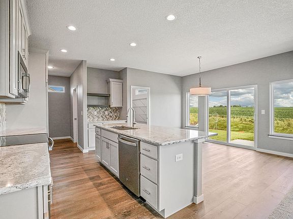 The beloved Woodbury by Skogman Homes is coming in Waterloo! Luxury is the first thing that comes to mind with this fantastic home! Over 2,000 square feet above grade and 3-stall attached garage make this home instantly appealing from the curb. Stepping inside from the large front porch, you are instantly in awe by this luxurious foyer with grand ceilings and beautiful large foyer light, wrapped by the wide U-shaped stairs. Inside you will love entertaining in this awesome open-concept floor plan with large great room, and upgraded kitchen with quartz tops and soft-close cabinets. Luxury plank flooring on the main level is sleek and convenient. Don't forget about the enormous walk-in pantry to store all your small appliances to keep the kitchen spotless! Upstairs you will love having 4-bedrooms all on the same level. Walking into the Master Bedroom, you won't believe how much space there is. Off the master, check out this master closet that is as big as some small bedrooms! It doesn't end there though; the master bathroom features a double bowl vanity, and luxurious tile shower. Wait, there is more to love though! This home is sitting on a beautiful corner lot with backing up to rolling fields providing privacy and gorgeous sunrises. Combine all this with Waterloo's amazing 3-Year Tax Abatement and you can't find a better home to fit your needs and your budget! Don't miss your opportunity at this great home, schedule a showing today!