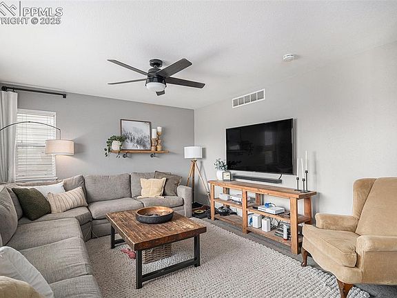 Welcome to a stunning 3-bed, 3-bath home in the heart of Monument, CO, offering breathtaking mountain views and a functional layout. The main floor features a welcoming living room, perfect for entertaining, while the open-concept kitchen boasts granite countertops, stainless steel appliances, and ample cabinetry. Adjacent is the dining area with large windows, filling the space with natural light. Upstairs, a second family room/loft provides additional living space, ideal for a playroom, office, or media area. The primary suite includes a luxurious 5-piece bath with a soaking tub, double vanity, and separate shower, plus ample closet space. Two additional bedrooms are generously sized and share a full bath. A convenient main-floor laundry room adds to the home’s practicality. Outside, the spacious backyard with a large concrete patio is perfect for summer BBQs, outdoor dining, or relaxing while enjoying Colorado’s beautiful scenery. Located just minutes from I-25, this home is a commuter’s dream with easy access to both Colorado Springs and Denver. It’s also near shopping, dining, and highly rated Lewis-Palmer District 38 schools. Outdoor enthusiasts will love the proximity to Fox Run Regional Park and endless hiking trails.