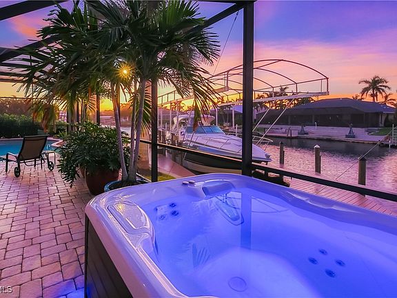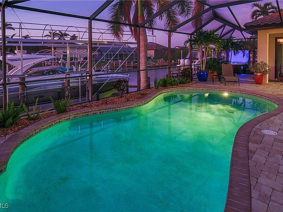 Welcome to 1432 SW 53rd Terrace, where luxury meets the excitement of Florida waterfront living. This custom-built Aubuchon Homes residence, completely remodeled in 2022, offers the ultimate blend of sophistication, comfort, and coastal charm. Featuring 5 spacious bedrooms, 3 full bathrooms, and a 3-car garage, this stunning home is situated on a direct Gulf-access canal—just minutes from open waters—making it a true boater’s paradise. The southern exposure ensures all-day sunshine over the resort-style pool area, complete with an electric-heated pool and spa, outdoor shower, and extended under-truss lanai with 90-degree disappearing sliders that seamlessly connect indoor and outdoor living. The summer kitchen is an entertainer’s dream, featuring an Artisan grill, Euhomy ice maker, and Trade-Wind vent hood, plus a convenient storage closet for all your poolside essentials. Inside, an open-concept floor plan and high baseboards set the tone for refined living. The chef-inspired kitchen boasts a walk-in pantry, separate prep island, KitchenAid refrigerator, GE Profile oven and microwave, and beverage coolers—perfect for hosting. The tray-ceiling master suite offers private lanai access through sliding doors, a custom walk-in closet with built-in organizer and safe, and a spa-like bathroom featuring a soaking tub, dual vanities, and a walk-in shower with dual shower heads. Additional highlights include a walk-around dock with a 25,000 lb boat lift, electric and water hookups at the dock, a Maytag washer and dryer, and epoxy-finished garage floors with walk-in storage, laundry tub, and attic access via pull-down stairs. The decorative double front doors, paver driveway and lanai, and lush tropical landscaping with mature palms complete this picture-perfect retreat. This exceptional Cape Coral residence captures the essence of luxury coastal living—where every detail is designed for elegance, comfort, and adventure on the water.