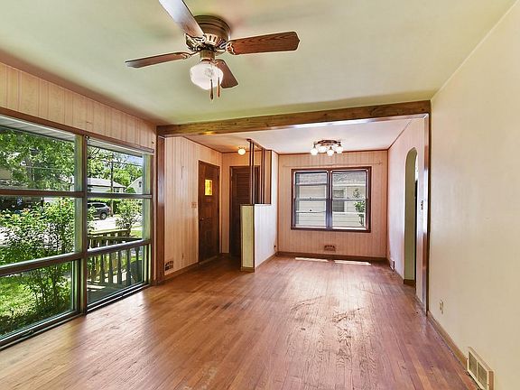 ORIGINAL OWNERS offer this charming 3 BR 1 bath Ranch w/ full basement; never before to market! HARDWOOD FLOORS THROUGHOUT, no carpet! Great location; just blocks from downtown coffee shops & restaurants. Floor to ceiling windows allow natural sunlight to pour into the living room/dining room combo, decorative fireplace adds to the charm. VINTAGE KITCHEN features original cabinetry & sink; appliances stay. SUN PORCH addition off the back of the home adds a great extra space to relax. Main bath features a new pedestal sink, basement is already ROUGHED IN to add a 2nd full bathroom if needed! Electrical has been updated w/ circuit breakers & 100 amp service. Siding has been replaced several years ago & high efficiency furnace installed; brand new water heater! Detached garage not only offers parking; but also a separate entertaining space w/ bar! LARGE BACKYARD with plenty of room to explore as well as a storage shed. Don't wait long for this well priced vintage opportunity to make it your own! Home in good shape but selling strictly AS-IS; conventional or cash offers only.