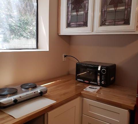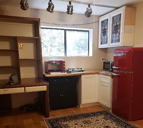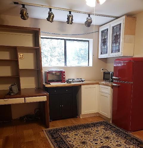 Available is a private studio/room or even a small professional office for a private quiet space. Super clean. Cleanliness is a must. Has a wall of built-in shelves and desk. There is a nice sized walk-in closet with cubbies and a rod to hang clothes. Plenty of storage space in this little unit. The front door leads to a staircase that descends to the private, wide heavy duty entry keyed door for the studio. It has a large window with nice breezes. The room stays mostly cool since it is on the lower level with shade trees surrounding the building. There is ample parking in front of the property as this is a more upscale residential neighborhood of San Pedro with primarily single family houses. Included is a microwave, electric plate with two burners, an electric convection oven and a newer retro Galanz refrigerator. Attractive, clean and comfortable. Located in a desirable and prestigious neighborhood of San Pedro. Seeking a clean, neat, respectable person with good credit. Absolutely no smoking anywhere on premises. Utilities will be allotted a fair portion for the space as noted. There is a working television and a bed with night stand. These items can be removed if preferred. I prefer calls or texts over email. Speak with Diane. Available now.