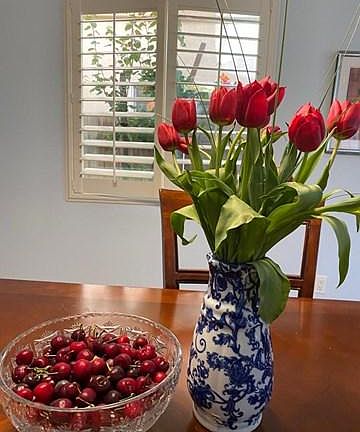 Beautiful two level home built 2004. 3 bdr, 2.5 bath, 1840 sq ft, 2 car attached garage with door opener. Built-in cabinets in garage. Balcony off master. 2 fireplaces, master & living rm. Real wood floors thruout. Travetine floors in kitchen, dining area and bathrooms. New window shutters thruout. Double pane windows. Upgraded bathrooms and kitchen. Recessed lighting in 1st floor. Granite counters in kitchen and bath. Master bath separate shower and jacuzzy bath, double sinks. All built-in appliances stay incl refrigerator. Newer stainless appliances: stove, microwave, dishwasher and refrigerator. Central vacuum. Absolute immaculate.