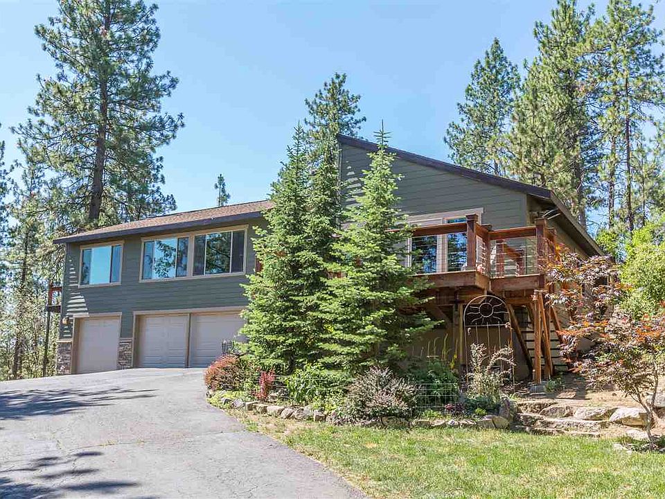 Big, Bold & Beautiful 4 bed/2.5 bath Contemporary home w/oversized 3 car garage on a 2.5 acre private setting close to town! Beautiful views of Mt. Spokane and surrounding territory from the living room and new deck, family room, and master bedroom and deck. Living areas are large and bright. Pool table in huge family room stays. New windows, siding, and exterior paint. Nestled into a hillside of basalt outcroppings, the property offers lots of privacy! Served by Mead Schools.