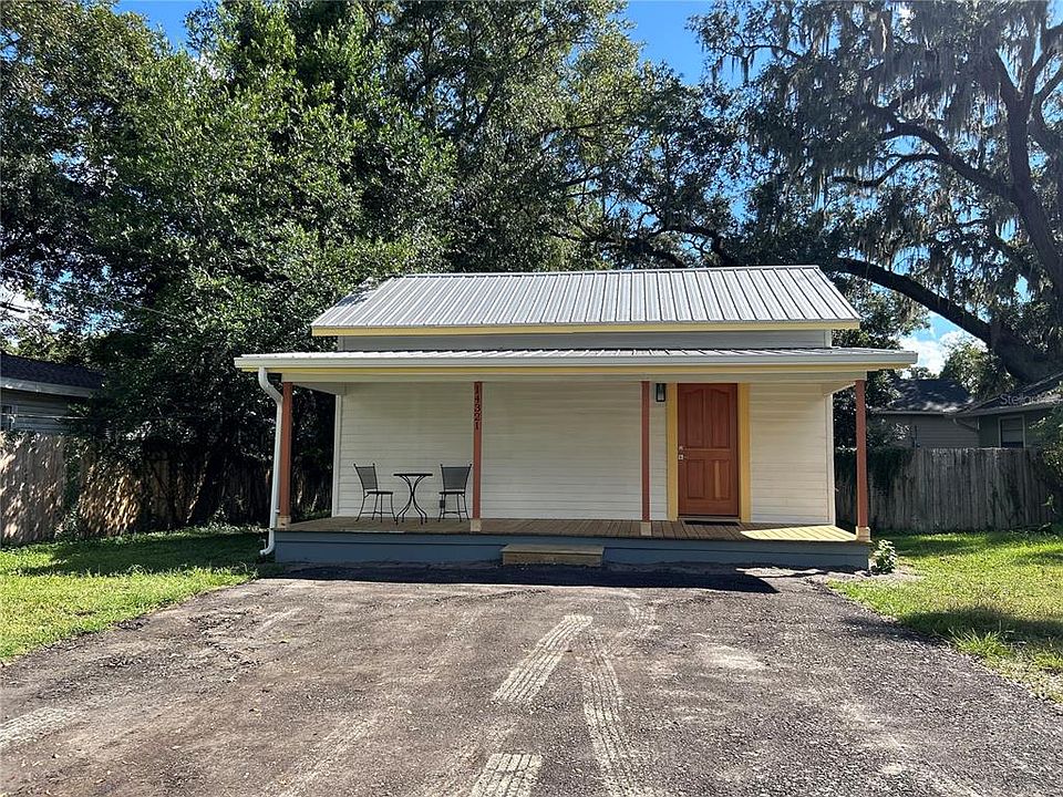 Come see this adorable, fully-renovated cottage located in the heart of downtown Alachua! You will not be able to stay away from the charm of this cozy space. Walk in through the covered front porch, perfect for two rocking chairs, and you'll come into the living space with rich wood flooring, a high ceiling and plenty of natural light coming from the oversized wood-cased window. Check out the kitchen, with beautiful wood countertops and plenty of storage and space for an island. Make yourself at home in the two bedrooms that both have wood floors and lots of natural lighting. Step outside through the kitchen and you will be in a private backyard oasis, shaded with mature oak trees and fully surrounded with a wooden privacy fence. This home is walkable to downtown Alachua and Legacy Park. It will make the perfect starter home or rental investment property. You don't want to miss this Alachua gem!