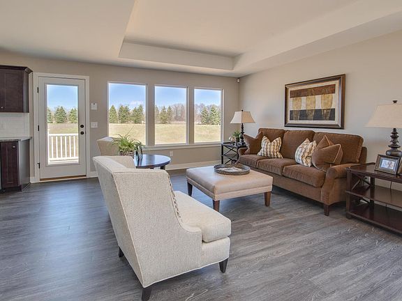 We are proud to build one of our newest floor plans, the Aster, in Bridgeview at Angels Crossing. The home features an open living, dining, and kitchen area on the main level. The attractive back splash, center island with granite counters, and the cabinet space make the kitchen very desirable. The living room features large windows and access to the large deck. The owner's suite is found on the main level and includes a huge walk-in closet, dual vanity, and ceramic tile shower. The second bedroom has great closet space and is located near bathroom two. Owners will love the main level laundry room and mudroom. The finished lower level features a third bedroom, third bath and large rec room, with plenty of great unfinished storage space as well.