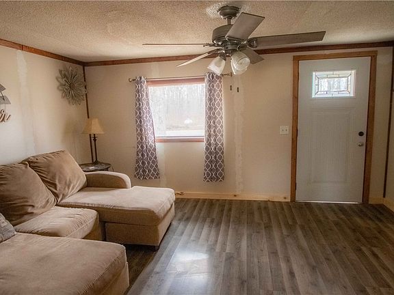 So much potential! This compact 2-bedroom, 1-bath home is situated on a 5.5 acre partially wooded lot. It would be perfect for someone just starting out with dreams of building your dream home in the future! The interior has had some recent updates started including flooring, plumbing, electric, bathroom, kitchen countertops and base cabinets, and it is just waiting for your finishing touches. The well pump is also newer. The home is ruggedly constructed with concrete block exterior walls, but could use some leveling inside. Sold As-Is.