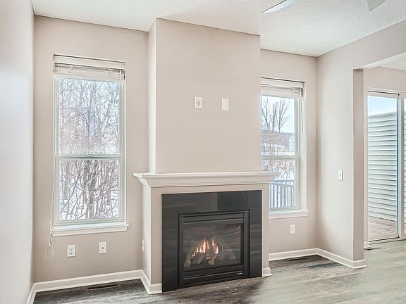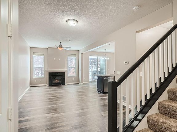 A beautiful, clean townhome featuring a gorgeous kitchen with stainless steel appliances, a center island and informal dining room that opens to a newly stained deck overlooking a private backyard and small pond. Enjoy low maintenance LVP floors on the entire main floor as well as a cozy gas fireplace set between large windows. A half bath on the main floor ensures both privacy and convenience. The 3 bedrooms up include a large Owner's suite, ceiling fan, huge walk in closet, and private bath with separate tub/shower as well as a dual vanity. Upper level laundry is just down the hall allowing both convenience and quiet. The finished lower level features a family room with access to a 3/4 bath and a large storage closet as well as a walkout patio door. This neighborhood provides easy access to parks, walking trails, Mystic Lake Casino and The Wilds Golf Club, highways and many shopping centers.