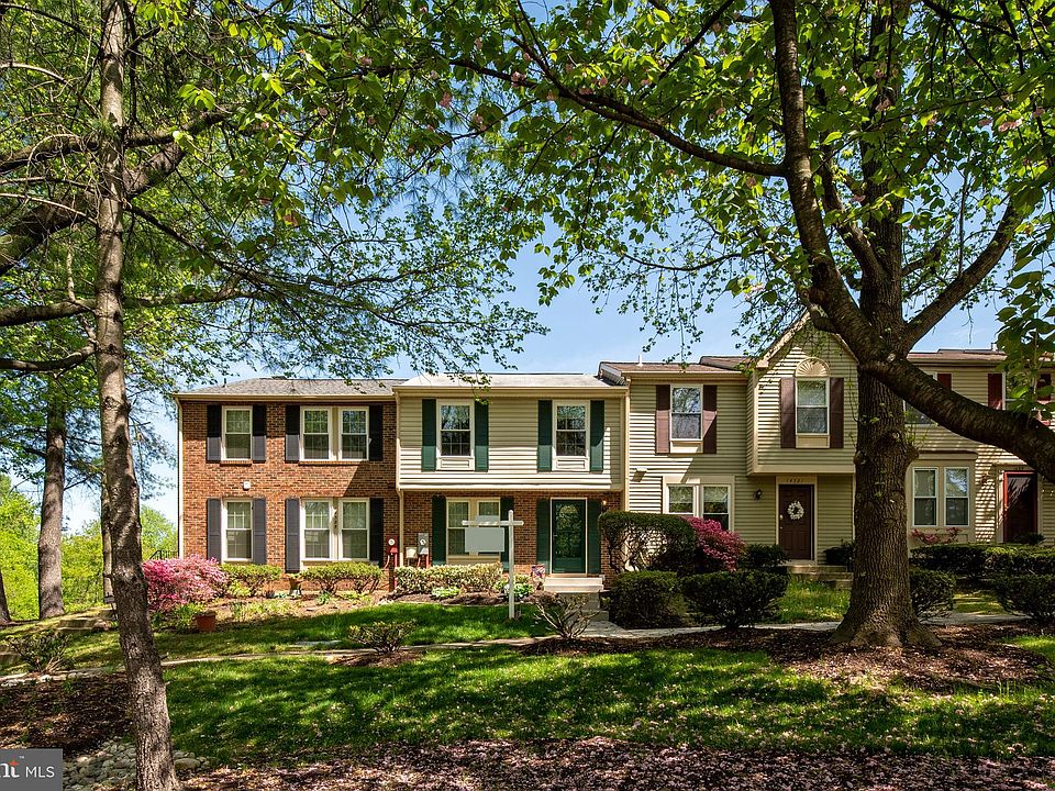 Beautiful Ryland updated townhome. This was the original model for the community. Enjoy the spectacular views of open space and Greencastle Lake from your deck. Features include hardwood floors on main and upper levels. The main level features large living room with custom built-ins , plenty of light and updated half bath; beautiful kitchen renovation includes upgraded cabinets, granite countertops, stacked stone backsplash and accent wall which is adjacent to the dining area with newer slider leading to spacious deck with stairs to lower level patio, open space and lake with walking paths. Two large bedrooms upstairs with vaulted ceilings and updated full bath; primary suite includes custom walk-in closet with newer pocket door and double vanity dressing area. Fully finished walkout lower level features a family room with masonry fireplace and custom built-ins; updated full bath; separate office with built-in desk and shelving; and separate laundry area. Most of the home has been freshly painted with all new carpet, and freshly stained deck (approved through HOA). Enjoy the view!