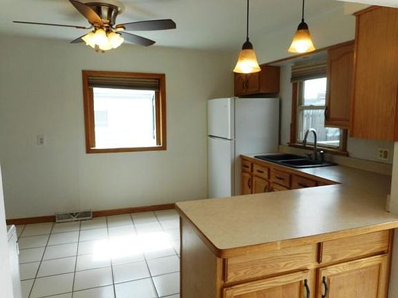 This well cared for vinyl sided home features plenty of oak cabinets in the eat-in kitchen with a brand new refrigerator-ceramic tiled floors and a ceiling light fan! There is also a neutral stackable clothes washer & clothes dryer. Relax on summer days on the huge 2 tier deck in the fenced-in backyard or out on the covered front porch area. Home being sold in as-is condition.
