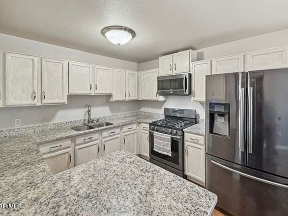 Enjoy year-round comfort with refrigerated air and added peace of mind with a hardwired alarm system. Custom wood-stained side gates provide access to a generously sized backyard with a tall privacy rock wall ideal for entertaining or relaxing in your own private oasis.