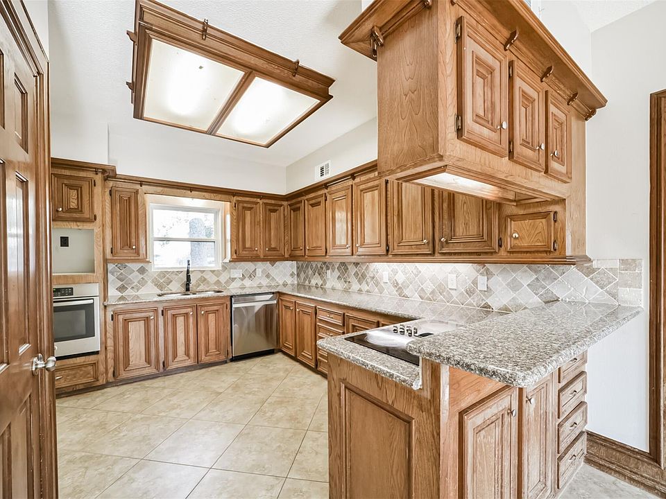 Granite surfacesBuilt-in bookshelvesStainless appliancesAll-wood cabinetsWine rackUnder-mount sinkCrown molding