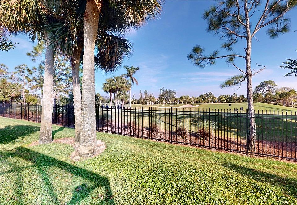 Welcome to this charming 2-bedroom, 2-bathroom villa with a den, perfectly situated with a serene view of the Cypress Lake Golf Course. This home features tile and laminate flooring throughout, offering a sleek, low-maintenance appeal. The kitchen is a chef’s dream with beautiful granite countertops, stainless steel appliances, and an inviting eat-in kitchen area. The guest bath includes a convenient tub-shower combo. The spacious master suite boasts an ensuite bath with dual sinks, a garden tub, walk-in shower, and a large walk-in closet. The den, with French doors, features a built-in desk area and a closet, offering a versatile space for work or relaxation. Step outside through French doors to the screened-in patio and enjoy the stunning golf course views. This home is complete with crown molding throughout, electric and manual shutters for added protection, and a two-car garage. This community is close shopping and entertainment including the beaches and the historic downtown area,, Experience comfort, convenience, and luxury in this beautiful villa!