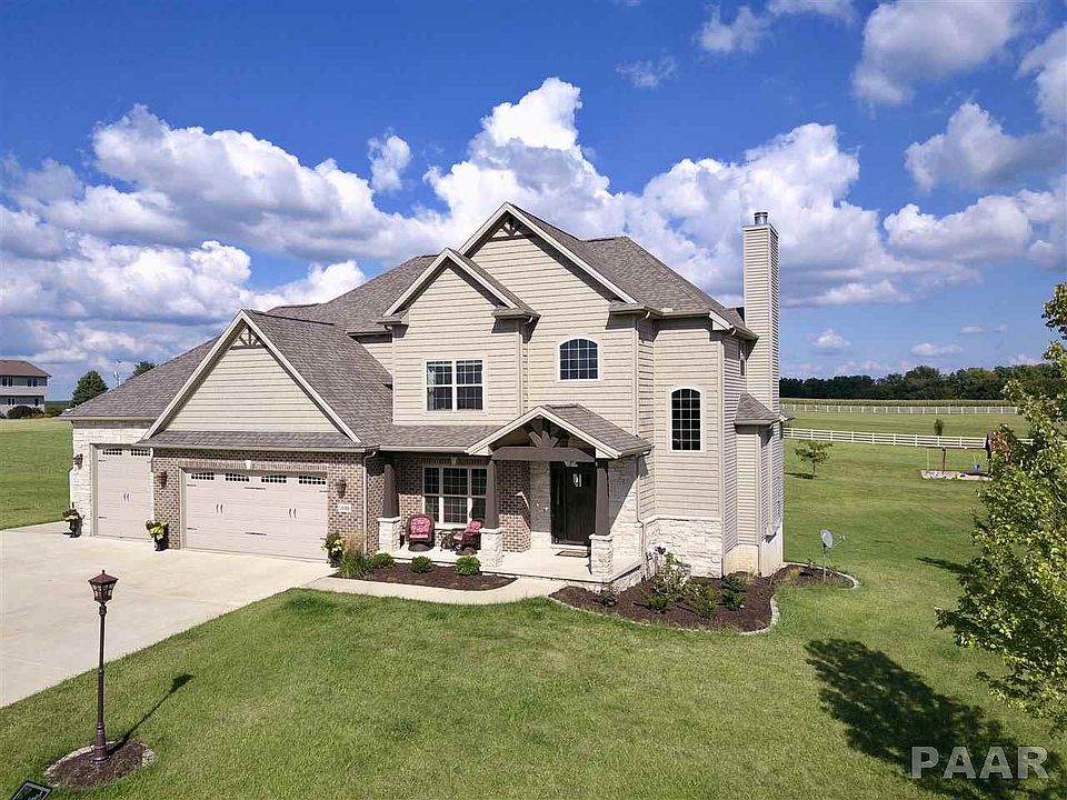 YES! Your search for a newer home on ACREAGE in DUNLAP is now OVER! You'll be just as impressed by the interior as you are viewing the exterior from every corner of this 5+ acre lot! 10 ft ceilings on the second floor! 13 foot ceiling in the 3rd stall of this mechanics heated dream garage! Prewired for lift/compressor/and a separate panel! Magnificent wood floors throughout main level! Unwind by the wood burning stone fireplace in the greatroom, while taking in the intricate coffered wood ceiling! High-end GE Cafe stainless steel appliances! 2 zone high efficient HVAC! 2x6 exterior walls