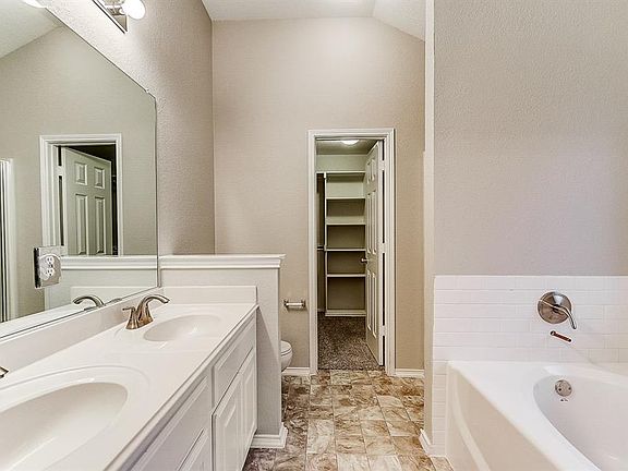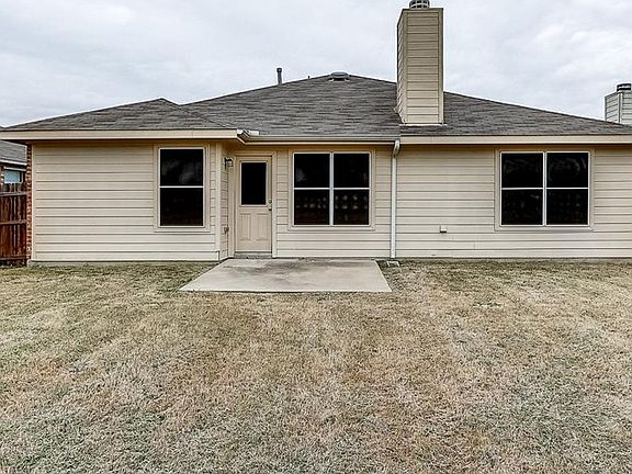 This Haslet home offers a fireplace, a master walk-in closet, a patio, and a two-car garage.