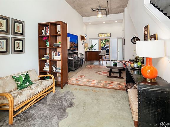 Modern Live-Work townhouse in the heart of Madrona. Thoughtfully designed and sustainably built with many green features including greywater recycling and rainwater collection for irrigation. Light-filled open floor plan w/ concrete floors, 2 story wall of windows, gas fireplace and sleek kitchen. A spectacular 500 SF rooftop deck w/ a view of Mt Rainier is perfect for entertaining! Versatile main floor could be 2nd bedroom, rentable Retail space or home office. Just steps to FAB Madrona shops!