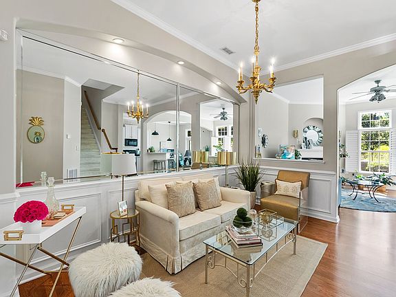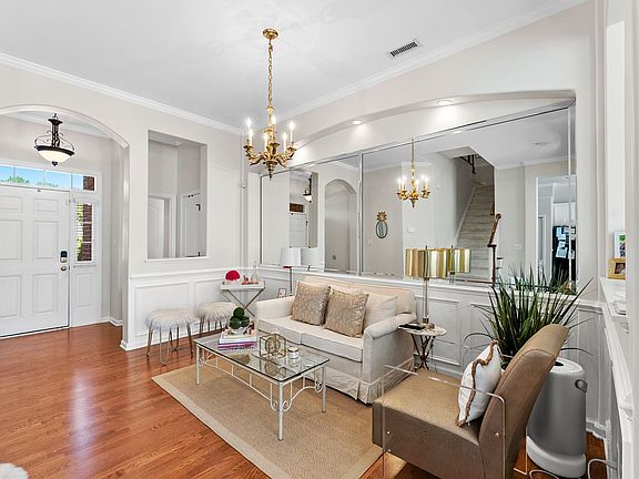Soaring high ceilingsGleaming hardwood floorsThree lavish bedroomsOpen floor planArched doorwaysSumptuous carpetingGrand staircase