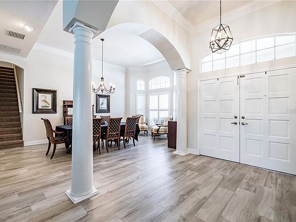 Private oasis in an exclusive, gated subdivision, within the heart of Wesley Chapel. Meticulously maintained, move in ready 5 bedroom, 4 bath with a second floor bonus room and pool on conservation/pond lot. The home has $100K in upgrades, to include a NEW roof. This spacious home has a large open floor plan and is perfect for entertaining! There's even room for the mother-in-law with a private bedroom, living area and en-suite bath situated at the rear of the home. This open, split floor plan allows for privacy. The master bedroom has a sitting area/office and his/her closets. All main living areas on the first floor of the home open to the crystal-clear heated swimming pool, overlooking the pond and conservation area. An inviting family room with a gas fireplace as its focal point. A new pool pump was installed in 2019. Outdoor kitchen with a TV, stainless steel refrigerator, drink well/cooler, and an Alfresco outdoor grill that allows for entertainment at its finest. 5 1/4" baseboards, plantation shutters, crown molding, dual AC units (new in 2008 & 2020), porcelain Italian wood-look flooring throughout, new paint on all doors and trim, new vanities, toilets, and quartz countertops in all bathrooms - too many upgrades to list! Zoned for Wiregrass Ranch school district. Close to Wiregrass Mall, Tampa Premium Outlets, restaurants and area beaches! No HOA. Low CDD.