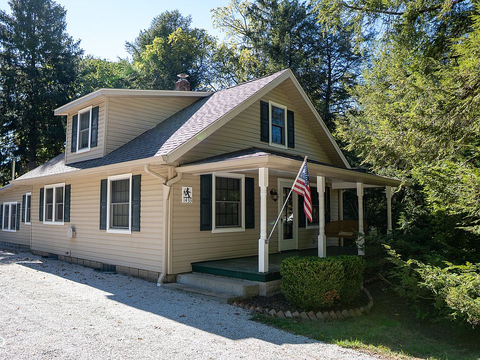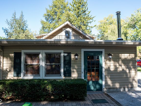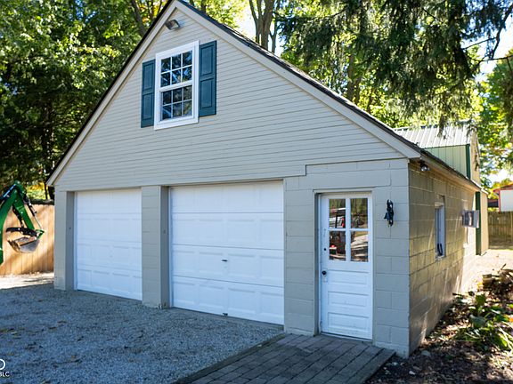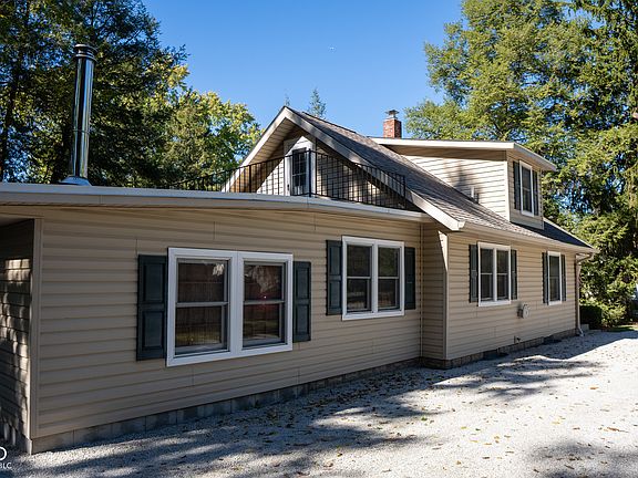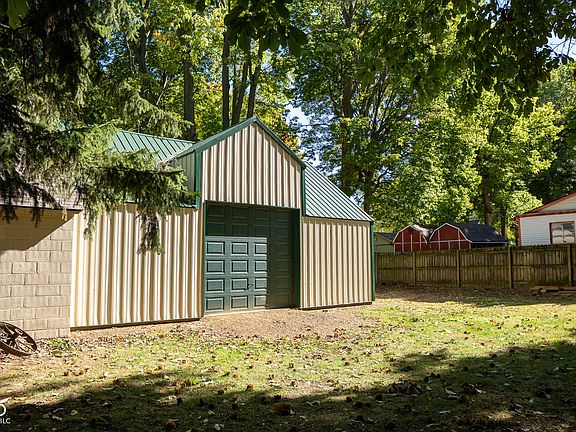 Charming Home with Workshop & Garden Setting! This home blends comfort, craftsmanship, and character! Nestled on almost a half-acre lot with mature trees and a serene garden-like setting, this home offers both privacy and personality. Step inside to find a completely remodeled kitchen featuring Miller Made cherry custom cabinets*, modern finishes, and plenty of space for cooking and entertaining. The home also includes newer siding, Pella windows, and shutters, plus updated wiring, outlets, and lighting for peace of mind and energy efficiency. Enjoy a cozy great room complete with a Vermont Casting wood stove, perfect for chilly Indiana evenings. A dedicated office provides flexibility for working from home or could easily be converted to a 3rd BR. While the primary suite opens to a charming walkout roof area overlooking the back yard and patio.-a lovely spot for evening relaxation. The detached garage is a hobbyist's dream, boasting an added 20x24 shop extension with attic space and pot-bellied stove for heat, and window A/C for year-round comfort. The unfinished basement offers endless possibilities for storage or a home gym. This one-of-a-kind property combines modern updates with timeless charm-ready to welcome you home.