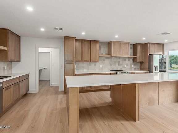 You'll immediately notice the bright, open floor plan, highlighted by expansive dual-paned windows that flood the home with natural light. The beautifully reimagined kitchen features elegant cabinetry, sleek quartz countertops, and shimmering stainless-steel appliances. A massive center island anchors the space, seamlessly connecting two generous living areas—an absolute dream setup for entertaining, relaxing, or gathering with friends and family.