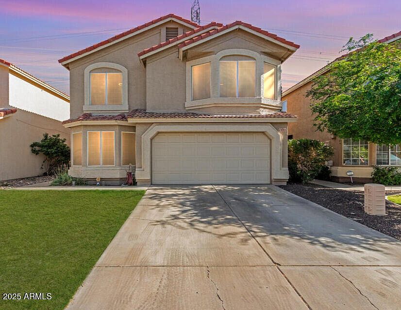 Step into this beautifully updated home with soaring vaulted ceilings on the second floor, and an open, light-filled floor plan. Enjoy recent upgrades including a NEW AC (2022), water heater (2021), and a high-tech automated sprinkler system. Featuring 4 spacious bedrooms plus a versatile den/office, this home offers stunning new flooring throughout, a gourmet kitchen with stainless steel appliances, ample counter space, and a breakfast bar. The elegant primary suite includes dual vanities and a generous walk-in closet. A tiled patio overlooks the backyard—perfect for outdoor living. This home has such a great layout and perfect if you need space! Come see it today!!