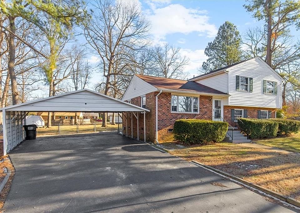 This turn-key Bon Air home sits high above street level on a half acre lot and offers fantastic curb appeal and an inviting interior with fresh paint throughout and newly refinished hardwood floors. It is located in a very desirable neighborhood with quick access to shopping, Huguenot Park and Powhite Pkwy. along with being zoned to great Chesterfield schools. The flexible floorplan offers room to spread out with three ample bedrooms upstairs, a spacious living room, dining area and kitchen on the main level and a huge family room with a wood burning fireplace and fourth bedroom or exercise room/office downstairs. The exterior amenities are second to none and feature a 2-car carport, paved drive, expansive fenced yard and three sizable storage sheds/workshops. Garden, play, let your pets run, create in the workshops or just enjoy hanging out on the 16 x 12 deck.