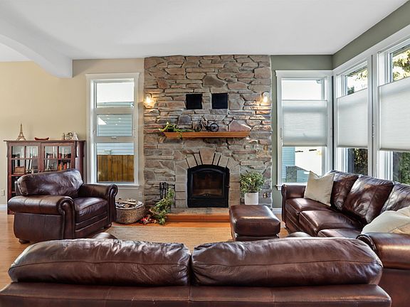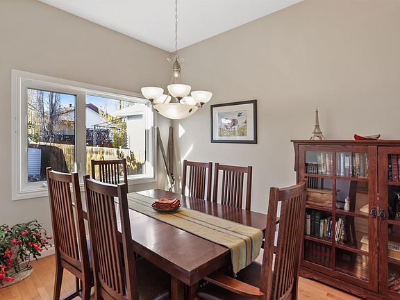 Impressive home featuring beautiful maple and tile flooring on the main level, with maple cabinets and a built-in entertainment centre. The living room offers a stunning floor-to-ceiling stone, wood-burning Heatilator fireplace. Formal dining room plus back entry from the kitchen leading to a 30' x 14' cedar deck with a hot tub and gas outlet. The spacious primary suite includes a walk-in closet and a luxurious ensuite with in-floor tile heating, “waterfall” soaker tub, and large tiled shower. The basement is finished (bathroom roughed in). Large windows throughout provide an abundance of natural light. Yard is fenced and nicely landscaped with mature trees. Garage is insulated and drywalled. A bright, warm, and inviting home inside and out!
