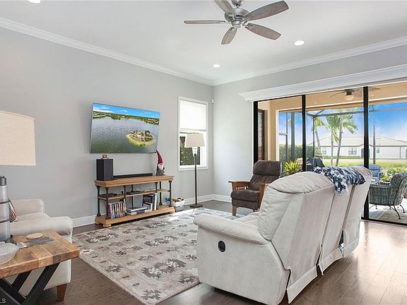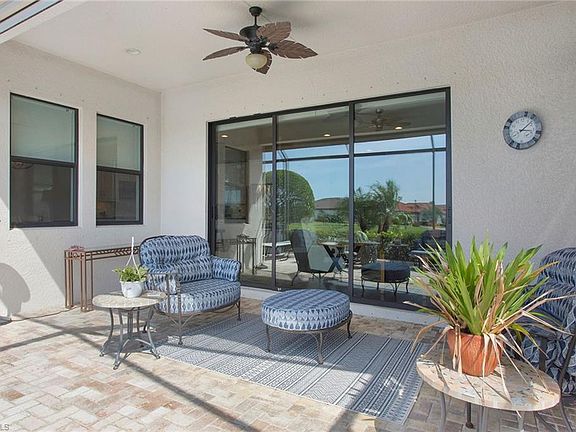 Welcome to Artesia, one of Naples newest private gated lifestyle communities offering an abundance of amenities. Built by renowned WCI, this beautiful waterfront Sand Dollar model features luxurious high-end finishes and valuable upgrades throughout including generator, solar panels for electricity and hot water heater, whole-house water filtration system, porcelain tile flooring, low maintenance COREtec luxury wood-look vinyl flooring, Closet Factory custom primary closet, UV in-duct air purifier, newly installed impact-resistant windows, custom window treatments throughout, Storm Smart hurricane screens, upgraded 8-foot interior doors, upgraded crown molding and trim, extended lanai and enclosed front porch with Fabri-Tech screens, soothing hot tub and potential to build the pool of your dreams. The well-appointed kitchen features a large walk-in pantry, 42-inch upper cabinetry, under-cabinet lighting, custom tile backsplash, high-end stainless-steel appliances, granite countertops, expansive breakfast bar and adjacent dining area. The expansive and private master suite features a dual sink vanity with Arabescato Bianco marble countertop, stylish custom-tiled shower, discreet water closet and a spacious walk-in closet with custom built-ins. The den offers the potential for a third bedroom. Convenient laundry facility with utility tub and storage cabinetry. Oversized extended screened-in lanai with gorgeous waterfront sunset views. Charming covered front porch with eastern sunrise exposure. Enjoy the modern clubhouse featuring festive community social events, resort-style swimming pool, three newer pickleball courts, two newer bocce ball courts, billiards room, fully equipped gym, exercise and craft classes, movie theater, dog parks and lakeside recreational paths. Short drive to downtown Naples and Marco Island, the best of both worlds. The HOA fee includes cable and internet. No CDD fee. Homeowner has flood insurance. Small refrigerator in kitchen and chest freezer in garage are excluded.
