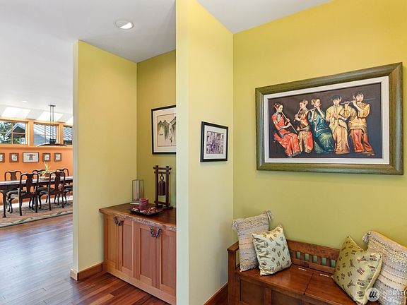 Looking for view & location? This Custom Home built in 2008 located on Morgan Hill has it all, with protected views of Port Townsend Bay & Cascade Mountains, easy jaunt to Uptown, Downtown, Fort Worden & Beaches. Cherry wood cabinets in kitchen, large walk-in pantry, second pull-out pantry, paper stone counters, & six burner propane stove open to the dining & living room for great entertaining. Tiger wood floors throughout 2nd & 3rd floors, prepared elevator shaft, central vacuum, radiant heat, propane fireplace in living room. Primary bedroom has two closets (one walk-in), balcony & propane stove for cozy nights. Private deck between second floor & garage attic, keyless locks on back door & garage, mature landscaping with irrigation system