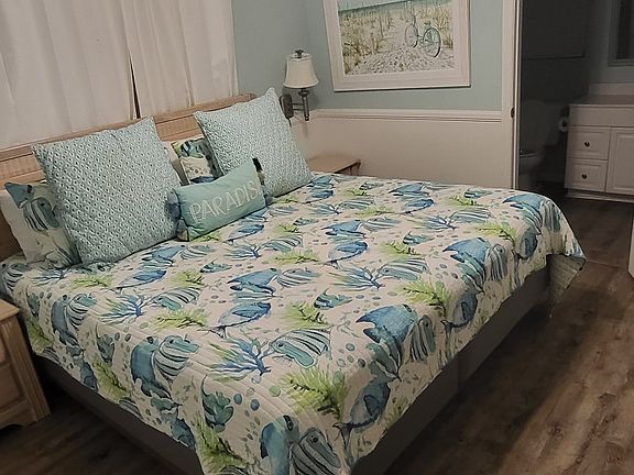 This recently renovated unit has a full kitchen with stainless steel appliances, 2 full bathrooms and a master suite with a king bed, 2nd & 3rd BRs have full beds.